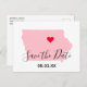 Cartão Postal De Anúncio Salvar a Data Coração Vermelho Iowa Rosa