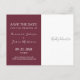 Elegante, simples, cartão postal de anúncio de salvar a data de casamento contemporâneo cinza-verde, Borgonha e azul marinho, com iniciais de monograma gigante na frente e caligrafia moderna.