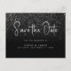 Cartão Postal De Anúncio Salvar a Data de Casamento Moderno Preto Brilho Ch