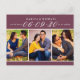 Rico e dramático, este cartão postal de salvar a data apresenta um cabeçalho burgundy profundo com os nomes do casal e a data do casamento em tipografia branca nítida. Três painéis de fotos personalizáveis destacam suas fotos de engajamento ou casal favoritas em um layout triptico ousado. O verso do cartão postal enviável inclui campos de endereço. Uma escolha sofisticada para paletas de cores de casamento burgundy, vinho ou outono.