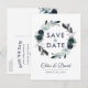 Cartões elegantes de salvar a data do casamento em azul naval com um fundo branco trendy que pode ser alterado para qualquer cor, flores em aquarela azul boho rústico e modelo moderno de salvar a data. Você encontrará itens correspondentes mais abaixo na página; se não encontrar o que procura, por favor entre em contato.