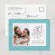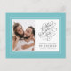 Adicione sua foto de noivado favorita e anuncie a data do seu casamento com nosso cartão-postal clássico de Save The Date em aqua azul-esverdeado e branco! O design apresenta caligrafia elegante e escrita em cinza carvão sobre um fundo branco nítido, colocado em uma moldura aqua acentuada por uma delicada borda branca. Personalize o design do casamento na frente com sua foto, primeiros nomes, local e data em letras e escrita cinza carvão. O verso do cartão combina em branco com escrita cinza carvão e tem detalhes adicionais, incluindo seu endereço de retorno e site ou outro texto personalizado. Para obter melhores resultados, corte a foto com um editor de fotos primeiro e substitua o texto do modelo pelos seus detalhes, em seguida, siga as instruções na área do modelo. Se precisar de ajuda com este ou qualquer um dos nossos designs, envie um e-mail para invitationsuites@gmail.com. Solicitações personalizadas são aceitas com prazer.