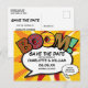 Personalize com seus nomes e detalhes para anunciar a data do seu evento especial. Tema de arte pop de história em quadrinhos moderno, divertido design retrô, perfeito para casamentos, chá de noiva, chá de bebê, batizados, festas de noivado, celebrações de aniversário, formaturas, festa de aniversário e outros eventos especiais ao longo do ano! Um design legal, moderno e divertido que coloca o wham zap pow no seu dia. Criado por Thisisnotme