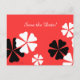 Flores negras e brancas num fundo vermelho brilhante decoram este cartão postal minimalista do anúncio "Save the Date". O reverso tem letras brancas no mesmo design de fundo. Muito elegante! O texto padrão é para o 50º aniversário, mas você pode facilmente alterar o texto para nome, idade, data, local etc. A correspondência entre os rótulos de nome e endereço é zazzle product 106861289716201517. Todos os Direitos Reservados © 2015 Alan & Marcia Socolik.