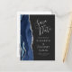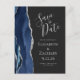 Cartão Postal De Anúncio Salve a Data Azul Escuro Ágata Moderna Prata