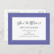 Anuncie a data do seu próximo casamento com nosso elegante cartão postal de Save The Date de casamento azul pervinca e branco! O design apresenta caligrafia e escrita elegante em cinza carvão sobre um fundo branco nítido colocado em uma moldura pervinca moderna acentuada por uma delicada borda branca. Personalize o design do casamento com seus nomes e data em letras e escrita cinza carvão. O verso do cartão combina em branco com escrita cinza carvão e tem detalhes adicionais, incluindo seu endereço de retorno e site ou outro texto personalizado. Para obter os melhores resultados, substitua o texto do modelo pelos seus detalhes e siga as instruções na área do modelo. Se precisar de ajuda com este ou qualquer outro design, envie um e-mail para invitationsuites@gmail.com. Solicitações personalizadas são aceitas com prazer.