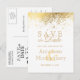 Cartão Postal De Anúncio Salve a Data Elegante Floco de Neve Branco e Doura