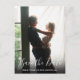 Este cartão de salvar a data com foto e roteiro moderno apresenta sua foto especial sobreposta com uma elegante escrita de salvar a data acima de seus nomes, data e local em texto branco. O verso tem detalhes adicionais para salvar a data, incluindo o site do seu casamento. Você pode personalizar o fundo para a sua cor favorita. Criado por Thisisnotme