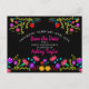 Cartão Postal De Anúncio Salve a Data Floral Festa Mexicana Preta Doce 16