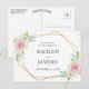 Cartão Postal De Anúncio Salve a Data Floral Folheado a Ouro Geométrico Chi