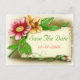 Cartão Postal De Anúncio Salve a Data Postal Floral Rosa e Verde