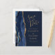 Este elegante cartão-postal de salve o dia moderno apresenta uma borda de ágata em azul marinho com aquarela, aparada com brilho dourado falso. O texto personalizável é dourado sobre um fundo azul-marinho. O lado reverso repete as informações, junto com um endereço de retorno personalizável.