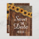 Cartões-postais de Salve o Dia de casamento Girassol de Madeira Rústica e Burlap! ~ Confira minha loja para ver todo o conjunto de casamento deste design!