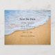 Salve o cartão-postal com uma fotografia de uma praia ouro marrom arenosa com surf branco e água azul.