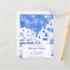 Uma pintura aquosa moderna da cidade pitoresca de Oia, na ilha grega de Santorini, para celebrar seu amor com um toque de elegância e beleza. Inspirados pelas impressionantes vistas da ilha, esses convites apresentam uma pintura aquosa mesmerizante de Oia em tons azuis e brancos sonhosos. Perfeito para um casamento de destino, estes convites vão dar o tom para o seu dia especial e garantir que os seus hóspedes estão a contar os dias para a sua comemoração inesquecível na Grécia. Arte original de Nic Squirrell.