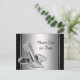 Cartões-postais de save the date para festa de aniversário com sapato de salto alto prateado brilhante com elegante sapato de salto alto prateado em um fundo preto e prateado. Você pode personalizar facilmente este cartão-postal de save the date preto e prateado para o seu evento adicionando seus detalhes na frente e no verso no estilo de fonte e cor e redação de sua escolha. Este é um design impresso sem brilho real. Você também pode alterar a cor do fundo.