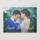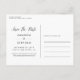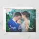 Um casamento elegante salve o cartão postal de data projetado para acomodar sua foto favorita de noivado de sangramento horizontal ou paisagístico. "Salvar a data" aparece como uma sobreposição de texto branco no script de caligrafia manual. Personalize com seus nomes, data do casamento e local do casamento. Cartões postais inversos para mostrar os detalhes adicionais da data, incluindo o site do casamento, com seu endereço de retorno e espaço para o endereçamento do destinatário.