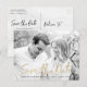 Casamento moderno de na moda salve os cartões postais de data com uma sobreposição de fontes do script de tendência de folha de ouro falso, espaços reservados para o seu texto personalizado e foto de noivado, e fundo de mármore branco. A parte traseira do cartão postal apresenta a opção de texto personalizado ou pode ser deixada vazio para uma mensagem manuscrita.