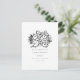 Esta elegante caligrafia em preto e branco salva a data do anúncio do cartão postal com folhas decorativas de louros. Adicione seus detalhes especiais de lançamento em um texto clássico.