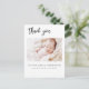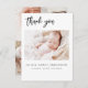 Simples Obrigado Colagem Elegante de Fotos que tem uma foto na frente e 4 Fotos na parte de trás. As cartas contêm uma tipografia cursiva escrita moderna, escrita à mão, que é elegante, simples e moderna para ser usada por um bebê recém-nascido ou por uma menina enviada pela mãe e pelo pai da criança criança para a família e os amigos.