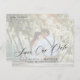 Modelo de cartão postal moderno romântico e chique de casamento salvar a data com sua foto personalizada em sobreposição transparente de vélin falso branco e caligrafia manuscrita preta. +++++++++++ Fácil de personalizar com seus detalhes e imagem em ambos os lados!