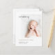 Este simples e encantador cartão postal de anúncio de nascimento com foto apresenta um design contemporâneo que permite personalizá-lo facilmente para se adequar ao seu estilo. Sobrepondo parcialmente a foto em direção ao topo, adicionamos 'apresentamos' em letras minúsculas em uma fonte moderna e relaxada que transmite uma sensação de calor e familiaridade. Mas sinta-se à vontade para alterar a mensagem para o que mais lhe agradar, seja 'bem-vindo' ou 'olá, mundo!', etc. Se você gostaria de destacar sua gratidão por um presente e transformar isso em um cartão de agradecimento, você pode editá-lo para mostrar 'muito obrigado!' ou 'obrigado' ou sentimentos semelhantes. E em qualquer caso, você pode incluir sua gratidão em uma breve mensagem no verso. Todo o texto na frente, exceto o nome do seu bebê, está em preto, que destacamos em uma elegante tonalidade de ouro chamada Ouro da Calif