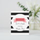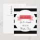 Este cartão postal "save the date" (salvar a data) apresenta um design de banner em um fundo listrado preto e branco. Personalize com seus nomes, detalhes e uma saudação especial no verso.