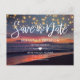 Um casamento de sonho na praia é maravilhoso. A localização é iluminada por milhares de luzes nas luzes das cordas. O som do mar e o pôr do sol do ouro intoxicam os sentidos e são ingredientes especiais de um casamento na praia. Seu dia especial começa com o cartão de data. Encomenda agora e seus cartões salve a data de casamento de praia serão entregues em pouco tempo.