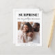 Cartão postal de anúncio de noivado engraçado com sua foto e "Surpresa! Estamos finalmente noivos" em uma mistura de tipografia moderna e script. Personalize com seus primeiros nomes na frente e uma mensagem personalizada de noivado ou anúncio de data de casamento no verso.