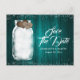 Cartão Postal De Anúncio Teal Mason Jar Rustic Wood Casamento Salve A Data