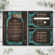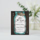 Cartão Postal De Anúncio Teal Mason Jar String Luz Rustic Wood Casamento