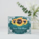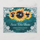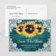 Cartão Postal De Anúncio Teal Rustic Wood Lace Sunflower Salvar Data