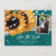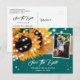 Esse casamento rústico salva os cartões postais com fotos com girassóis em burlap e fundo de renda são ideais para uma festa de casamento rústica teal inspirada em girassóis.