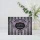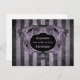 Um quadro arquitetônico vitoriano de ornamentado de arte digital em roxo e preto em um fundo roxo e preto listrado. Mostrado aqui em um cartão postal para casamentos vitorianos do estilo aristocrata gótico. Todo o texto pode ser alterado ou removido.