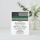 Convites de aposentadoria militar de linha verde fina ou Convites de festas militares que saem. Estes convites de festas do Exército da Linha Verde fina são perfeitos para uma aposentadoria militar, destacamentos militares são enviados, bem-vindos militares para a celebração de casa, graduação militar e soldados indo embora para a festa. A bandeira fina da linha verde representa todos os militares, militares, proteção de fronteiras, patrulha de fronteira, oficial de conservação, guarda florestal, diretor de jogos, polícia federal. Personalize este convite da bandeira militar com o evento, nome e detalhes da festa dos soldados. Veja nossa coleção para combinar presentes de aposentadoria militar, presentes de graduação militar, favoritos para festas e suprimentos. COPYRIGHT © 2021 Judy Burrows, Black Dog Art - Todos Os Direitos Reservados. Cartão-postal de aposentadoria militar de bandeira americana da linha verde fina