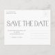 Uma Fotografia de Casamento com Tipografia Refinada para Salvar Data com foto de página cheia, tipo moderno e layout simples na parte frontal. A parte traseira tem 2 fotos adicionais e mais detalhes. Clique no botão de edição para personalizar este design.