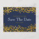 Cartão Postal De Anúncio Tom de Bebê de Tom Dourado Azul Salve a Data