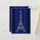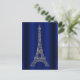 Cartão Postal De Anúncio Torre Eiffel Azul Royal Prata Paris Salve a Data