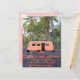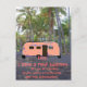 Anuncie sua mudança para uma nova casa com um divertido cartão postal de mudança de endereço com arte de trailer de estilo vintage contra uma praia tropical com palmeiras ao longo da costa.