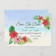 Anuncie a data do grande dia com este casamento floral tropical Salve o cartão postal da Data. Buquês de hibisco vermelho e cor-de-rosa, plumeria branca e folhas tropicais de cor d'água destacam uma estrutura geométrica dourada. Uma cena de praia tropical com aquarelas está no fundo.