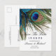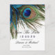 Cartão Postal De Anúncio Turquesa Marinha Pena de Pavão Boho Salvar a Data