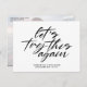 Atualize sua família e amigos com sua nova data de casamento. Esse anúncio de adiamento de casamento traz fotos de solteiro, roteiro de tipografia, vamos tentar isso de novo'' e seus nomes em tons de negrito modernos na frente, personalize com sua mensagem e detalhes no verso.