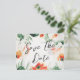 Um cartão postal floral moderno e belo, com uma adorável design de aquarela de flor selvagem e um esquema de cor branca, verde e laranja, acentuado por uma fonte de caligrafia contemporânea para um aspecto moderno, mas romântico. A parte de trás do cartão postal é personalizável com os detalhes do seu casamento e o seu Código QR pessoal para direcionar os seus convidados para o seu site de casamento para mais informações ou atualizações.