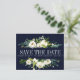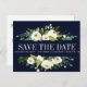 Projetado para coordenar com nossa coleção floral de cor d'água do White Bloom, cercado por delicadas flores brancas pintadas como rosas e peões e colocado sobre um fundo azul, este design é atraente para os olhos e muito bonito. moderno e simples, salve a data do cartão postal aparece no centro entre a folhagem e um cartão-postal modelo está no verso. Todos os estilos de texto, cores, tamanhos também podem ser modificados para ajustado de suas necessidades Para obter ajuda ou solicitação personalizada (sem encargos), entre em contato conosco em citronelladesign@gmail.com ou visite nossa loja