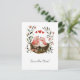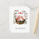 Two cute little pink lovebirds cozied up together in a nest made of twigs and decorated with pink flowers. Three pink hearts are above the birdies - a sweet and whimsical way to announce your big day.