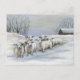 Este cartão postal apresenta uma reprodução do meu desenho original a pastel de ovelhas na neve.