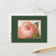 Uma rosa rosa simples florescendo contra um fundo azul creme e céu dentro de uma moldura rosa em um fundo de tela falsa verde caçador. O verso tem um pequeno botão de rosa rosa no canto. Clique em Personalize para adicionar seu endereço de devolução ou mensagem.