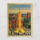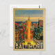 Cartão postal antigo de Baltimore com uma bela cena de férias no início da noite. Baltimore, Maryland, no Monumento George Washington com luzes de Natal como adorno.