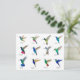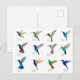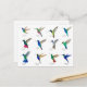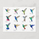Cartão postal único com várias espécies pintadas à mão de beija-flores principalmente tropicais, como beija-flor-manga, beija-flor-coroa-roxa, beija-flor-de-colarinho-azul, beija-flor-safira-de-cauda-dourada, beija-flor-estrela-escura e beija-flor-orelha-roxa-mexicano, entre outros. Imagens tiradas de minhas pinturas originais em aquarela.