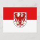 Cartão postal com bandeira de Brandeburgo (Brandenburgs), design com duas bandas de cor vermelha e branca com casaco de armas do Estado, com a ilustração de uma águia vermelha no centro